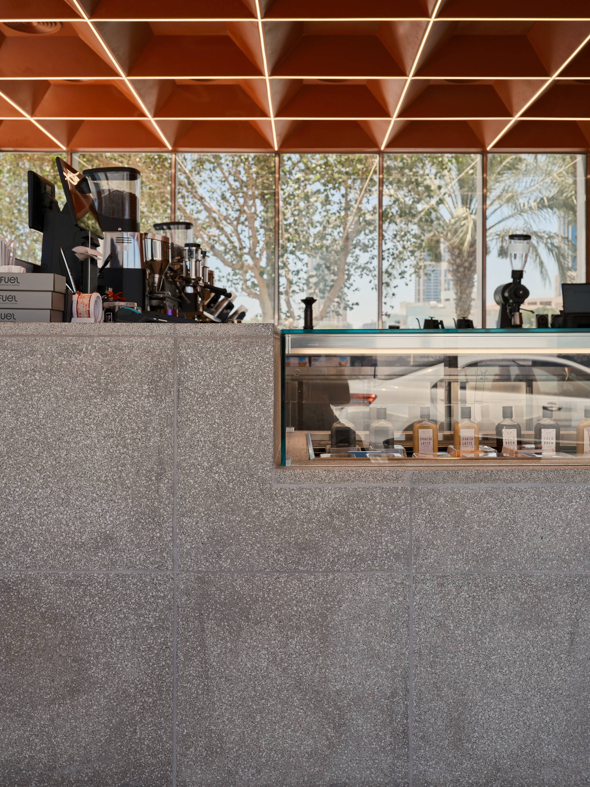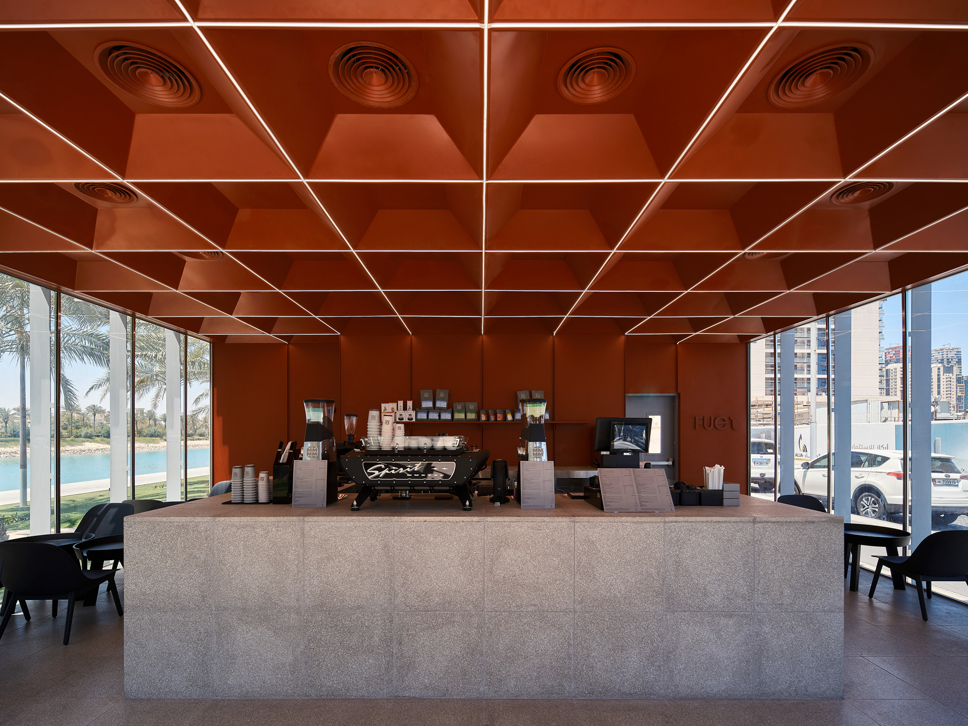 Fuel Specialty Coffee Standalone store Located at Lusail, Doha , Qatar. Designed by Studio FORM Photography by Mohammad Taqi Ashkanani